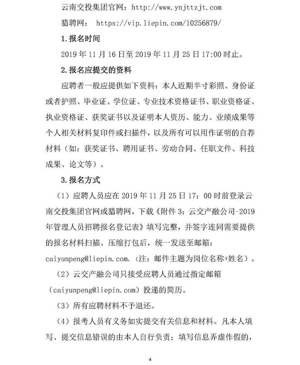 云南交投產(chǎn)融控股有限公司2019年下半年管理人員社會招聘公告