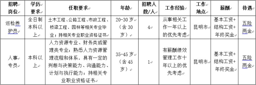 昆明橋隧管理有限公司關于2020年公開招聘公告