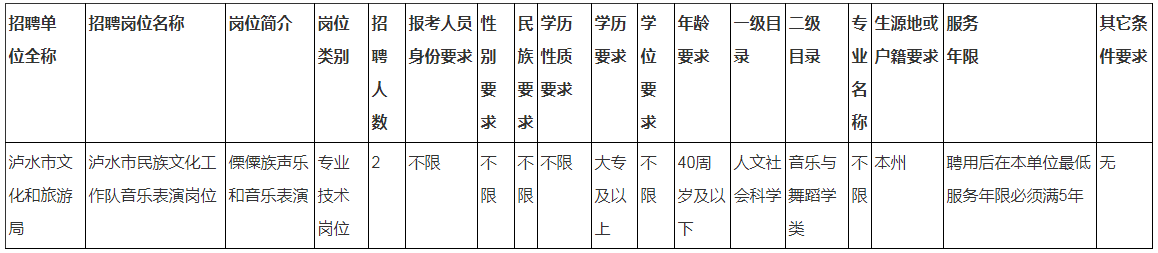 瀘水市人力資源和社會保障局關于2020年特招特聘瀘水市民族文化工作隊工作人員公告